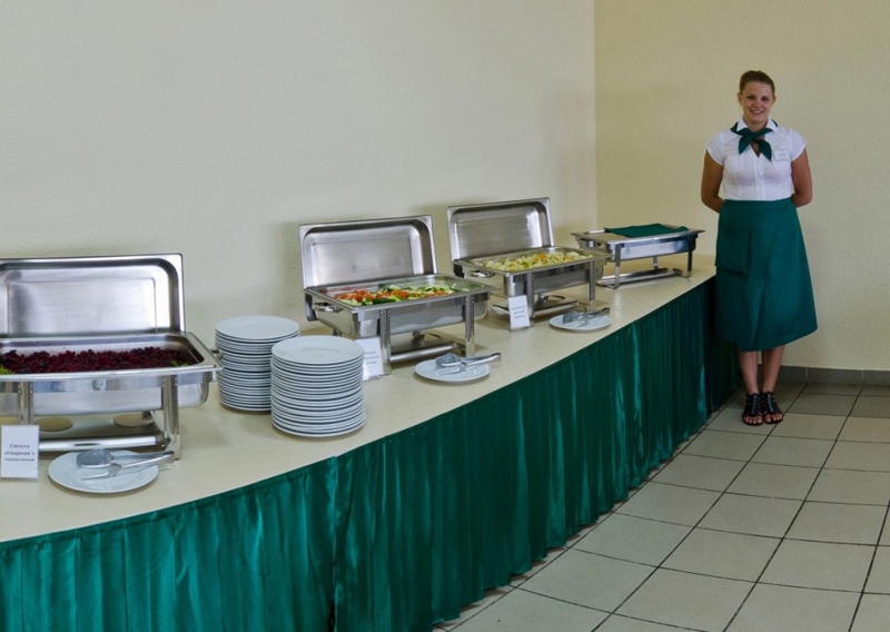 Питание гостям отеля «Ирина» предоставляется в собственном кафе-столовой с просторным, светлым обеденным залом, обставленным удобной деревянной мебелью. В кафе можно посидеть на топчанах с мягкими подушками, воспользоваться стульчиками для кормления. Для малышей в зале оборудован игровой уголок, а также работают аниматоры, которые подарят и детям, и взрослым массу позитивных эмоций.