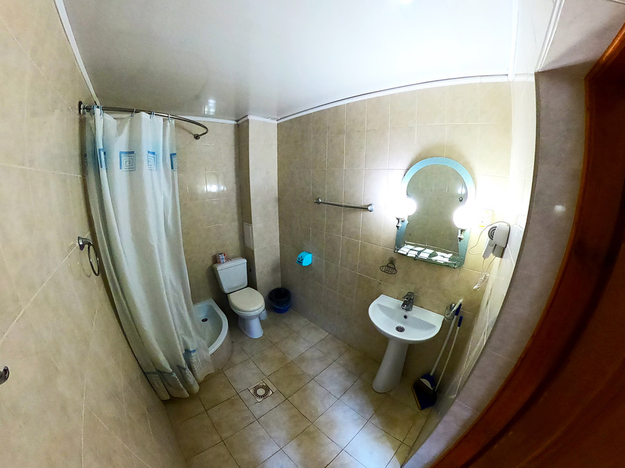 - санузел (душевая кабинка, туалет, биде, умывальник, полотенца, фен),